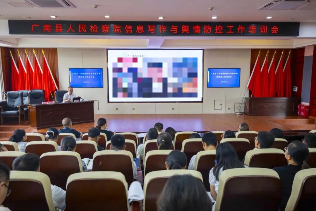 为进一步加强检察信息写作与舆情防控工作,提升干警挖掘亮点信息、撰写高质量信息的能力。近日,广南县人民检察院举办了检察信息写作与舆情防控专题培训,邀请县委宣传部宋传林副部长授课,全体干警参加培训。